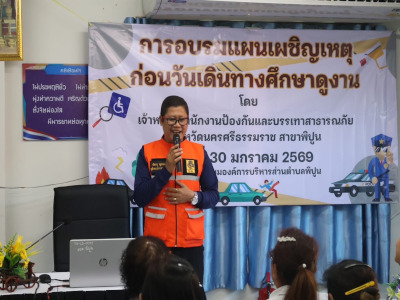 โครงการศึกษาดูงานโครงการอันเนื่องมาจากพระราชดำริและกิจกรรมเข้าเฝ้าฯ กราบถวายบังคมพระบรมศพสมเด็จพระนางเจ้าสิริกิติ์ พระบรมราชินีนาถ พระบรมราชชนนีพันปีหลวง ขององค์การบริหารส่วนตำบลพิปูน ประจำงบประมาณ พ.ศ. 2569 อบรม "แผนเผชิญเหตุก่อนวันเดินทาง" โดย เจ้าหน้าที่สำนักงานป้องกันและบรรเทาสาธารณภัยจังหวัดนครศรีธรรมราช สาขาพิปูน